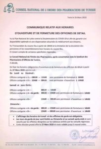 قرّر المجلس الوطني لهيئة الصيادلة، فتح صيدليات الليل استثنائيا، من الساعة 14:00 إلى الساعة 08:30 صباحا، و ابتداء من يوم 27 مارس.