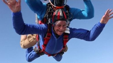 امرأة تسعينية تحتفل بعيد ميلادها بالقفز من ارتفاع 3600 متر