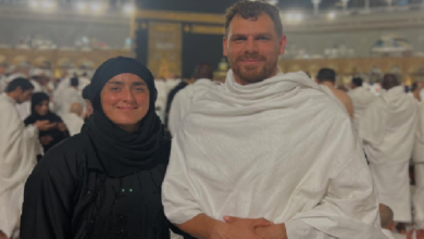 من ساحة الحرم المكي… أنس جابر تؤدي مناسك العمرة مع زوجها