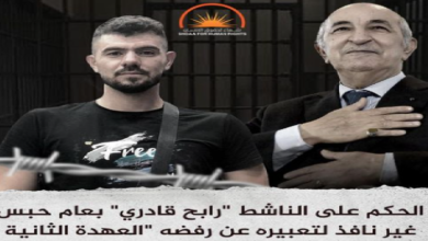 الجزائر ــ الرأي الجديد أصدرت المحكمة الابتدائية بالعمارية في ولاية المدية يمؤخرا، حكمها في حق الناشط رابح قادري بسنة سجن…