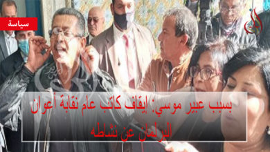 تونس ــ الرأي الجديد (برلمانيات) أعلن المكلف بلإعلام بالاتحاد العام التونسي للشغل، غسان القصيبي، أنه تمّ إيقاف الكاتب العام لنقابة…