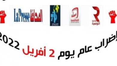 تونس ــ الرأي الجديد تنفذ مؤسسات الإعلام العمومي، اليوم السبت 2 أفريل 2022، إضرابا عاما بدعوة من النقابة الوطنية للصحفيين…