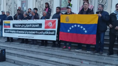 تونس ــ الرأي الجديد نظمت “الشبكة التونسية للتصدي لمنظومة التطبيع”، اليوم الأحد، وقفة احتجاجية أمام السفارة الأمريكية، تنديدا “بالجرائم الأمريكية…